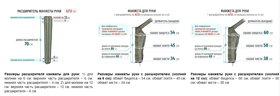 Данный расширитель подходит для манжеты-рукава к аппаратам Zam-02, Zam-200S и Luxury Zam. Благодаря двум уровням специальных молний можно увеличить обхват манжеты для руки по всей длине на 6 или 12 см на выбор.