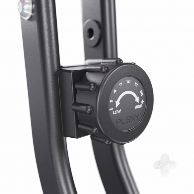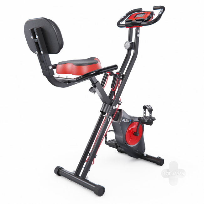 Вертикальный велотренажер с эспандерами DFC X-Bike PLENY CF-917FM — идеальный кардиотренажер для домашних тренировок. Этот велотренажёр представляет собой современный кардиотренажер для ног и рук домашний, который сочетает эффективную аэробную нагрузку с возможностью проработки мышц верхней части тела. Как велотренажер для ног, он обеспечивает качественную нагрузку на мышцы бёдер, ягодиц и икр, а встроенные эспандеры превращают его в полноценный тренажер для ног и рук. Максимальный вес пользователя – 120 кг, что делает тренажер кардио доступной для широкого круга людей. Модель подходит для пользователей с разным уровнем подготовки – от новичков до опытных спортсменов. Тренажер для ног оснащен 16 уровнями нагрузки, которые регулируются механически. Инерционный вес маховика 3 кг. Магнитная система сопротивления обеспечивает плавный и бесшумный ход, что делает тренировки комфортными даже вечером или ранним утром. Встроенный монохромный LCD-дисплей отображает ключевые параметры: скорость, время, дистанцию, пульс, количество сожженных калорий и режим сканирования данных. Работает дисплей от 2-х батареек ААА, идущих в комплекте. Эргономичное сиденье с 8 уровнями регулировки по высоте (от 80 до 90 см от пола) позволяет настроить тренажер под любой рост. Размер сиденья равен 27 × 25 × 7 см, а размер спинки 30 × 16 × 4 см. Педали с противоскользящим покрытием и 4 уровнями фиксации ремней надежно удерживают стопу во время интенсивной тренировки. Датчики пульса на рукоятках помогают контролировать нагрузку без дополнительных устройств. Благодаря складной конструкции тренажер легко хранить даже в небольших помещениях. В сложенном виде его габариты составляют 48 × 58 × 133 см. Встроенные транспортировочные ролики позволяют без усилий перемещать его по комнате, а компенсаторы неровностей пола обеспечивают устойчивость на любой поверхности. В комплекте идут эспандеры длиной 72 см для проработки мышц рук и плеч. Подставка под планшет или смартфон делает тренировки более увлекательными – можно смотреть фильмы, сериалы или онлайн-уроки. Велотренажер домашний DFC X-Bike PLENY CF-917FM – это современный, функциональный и компактный тренажер для домашнего использования. Он поможет поддерживать форму, укреплять мышцы и улучшать общее самочувствие и здоровье!